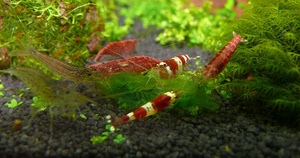 Красные это отборные вишни под названием редфайр, те что прозрачненькие это креветки амано. Есть еще шмели. Ченую бороду или вьетнамку никто из креветок не ест. Всех креветок заказывали из Москвы.