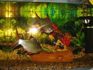 Продам аквариум объемом примерно литров 70 без крышки, с рыбами, грунтом и фильтрами. По цене договоримся. Рыбки любимые, но нет возможности их с собой перевезти, рыбки непривередливые, только кормить один раз вечером, и чистить аквариум раз в две недели, подменять воду, рыбки живут с 2007 года, с возраста мальков ничем/никогда не болели. Возможно, кто-нибудь просто хотел бы забрать рыбок, им как раз нужно попросторнее аквариум, единственное чтобы он был без зеленых растений, иначе они всё слопают. Хотелось, чтобы человек хотя бы немножко был знаком с аквариумом. Связь ч/з ЛС. Если есть вопросы задавайте.