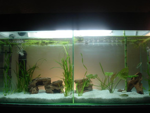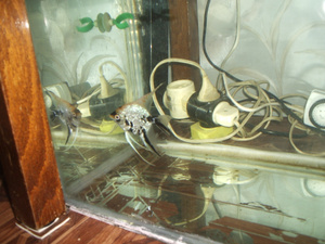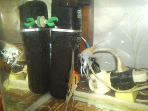 Неожиданно отнерестились скаляры прямо в голом карантинном аквариуме. За неимением лучшего субстрата, для нереста был выбран фильтр.