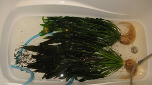 Это не рыбы, да и эхинодорусы - не такая уж ценность, но размеры поразили (пока не достал из аквариума при глобальной перестановке, они казались меньше), и в ванной смотрятся шикарно :)ну и я выложу кустик, так же при пересадке сфотал