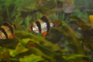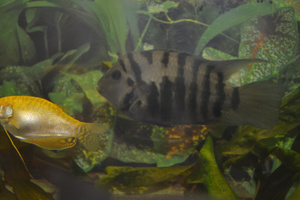 Вот мои питомцы: 1 цихлозома чернополосая, 2 барбусы, 3 скалярия и бирюзовая гурами, 4 солнечная гурами, 5 лабео биколор