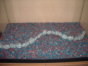 Начал устанавливать аквариум осенью, поэтому весь грунт пришлось покупать. Тут я немного ступил. Не увидел сразу в продаже естественного грунта и использовал искусственный. У него свои плюсы и минусы. Плюсы: купить можно в любое время, нормальный размер, универсальный для большинства обитателей. Минусы: выглядит всё же неестественно из-за угловатых форм и расцветки. ИМХО годится только как добавление к естественному грунту. Ну и ладно, забегая вперед, скажу: весной переделаю, насею нормального грунта и переделаю.