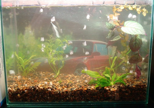 И тут пришло озарение, что кады рыбки вырастут, аквариум будет мелковат. Какой выход из ситуации? Прост как два пальца... Переселить их через несколько месяцев в аквариум побольше. Всё, я опять заболел....