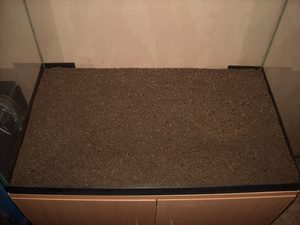 Насыпал с небольшим (совсем небольшим) наклоном на промытый аквариум. (Да, не буду писать о необходимости промывать все предметы, которые помещаются в аквариум, принимаем это как аксиому).