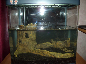 Намотал мох на коряги. Как это муторно в воде делать. Вот такая теперь картинка. Завтра жду растений из Москвы....
