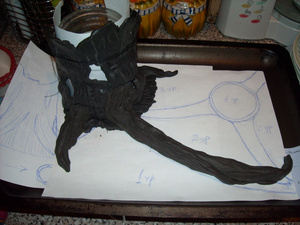 Очень удобно дно аквариума как раз под формат А4. Рисуем план и вперед лепить. Мое тут идея, план и физическая работа по разминанию пластики до легколепимого состояния. Сама лепка легла на хрупкие плечи жены.