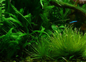 Может бликсу япнскую туда посадить? Она попышней будет, вот как раз теннелус пересаженный из маленького аквариума слева от бликсы.