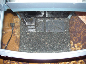 . Немного мелковат, но, учитывая, что водозабоник под грунтом - некритично.Да, разделил грунт на 2 части, одну, что побольше перемешал с удобрением Tetra Initial Sticks (не реклама