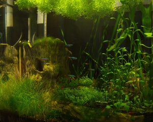 Новые жители банки - десяток красных неонов, сюда же планируется переезд из большого аквариума двух отоцинков. Сегодня уже сил нету, слайды завтра.
