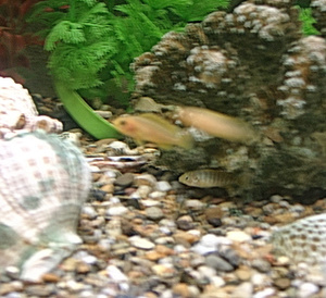 Аквариум стоит перпендикулярно окну, вдоль стены, есть искусственное освещение, аэрация, грунт, все растения искусственные. Аквариум 100 см на 20 см. Население до недавнего времени - две Акары, две боции, две рыбки, который в зоомагазине называют йеллоу (Yellow). кормлю тетрой для цихлид. Чистка раз в неделю, смена где-то трети воды, сифонится грунт (через раз), мою растения и ракушку, в которой боции прячутся. вода не отстаивается.