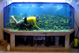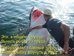 19. При покупке рыбок не стесняйте себя в средствах. Берите самых дорогих рыбок. Поразите своих знакомых. Скажите так небрежно – а это у меня ПСЕВДОБРАХИОТРОФЕУС ШИКЕЛЬГРУБЕРА. Привезена из Африки. 300 баков отдал, но не жалею. Если ПСЕВДОБРАХИОТРОФЕУСА нет – смело показывайте на гуппи, все равно они в рыбах не разбираются. Берите много рыбок. Много рыбок это красиво. В аквариум 50 литров вполне можно запустить штук сто рыбок. 10 астронотусов, 10 скалярий, 10 неонов, 10 рыб-ножей... Вообще берите все по 10. По фен-шуй 10 – это счастливое число.