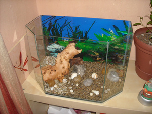 пока стоит банка с растениями и парой анциков. в стадии изготовления крышка и фильтр, поэтому особо нечего фотать. Думаю на выходных закончу рукоделие, тогда и продолжение будет