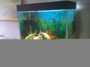 По причине отъезда хозяина продаются 4 больших прудовых карпа прим. 30см длиной, есть много маленьких карпиков 2-3 см, а так же аквариум в комплекте со всем необходимым (см. фото). Аквариум 800х470х800 7500руб,