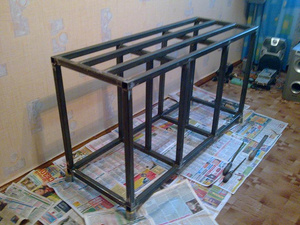 Итак, первый вопрос по тумбе. На той неделе сварили тумбу из стальной трубы.