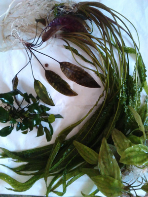 Валиснерия, роголистник, элодея, немного пистии, и что-то вроде криптокарины.