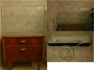 Обменяю на бутылку шампанского "Абрау-Дюрсо" красное, аквариум 50 л. К нему накрывное стекло и тумба.