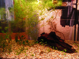 Засыпал грунт, удобрив палочками от тетры, отломал от большой мангровой коряги кусок поменьше, посадил траву (спасибо Анатолию за вчерашний приличный пучок).