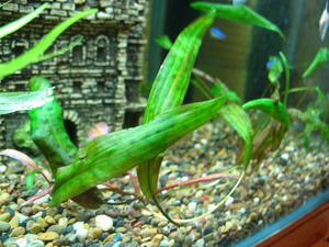 и последний неопознанный зверь - апоногетон, какой определить можно только по цветению, и то очень приблизительно в связи с тем что очень легко опыляются друг с другом и образуют слабоузнаваемые гибриды.