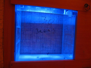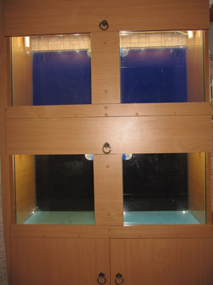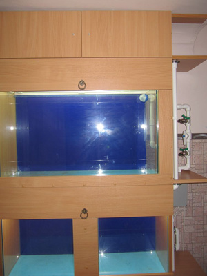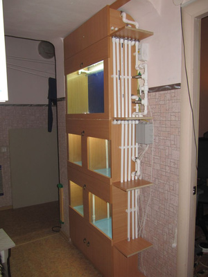 В четверг наконец-то мне сделали оставшиеся банки. Поэтому первым делом промыл все аквариумы и налепил фон. Вот как выглядит предпоследний блок с банкой.