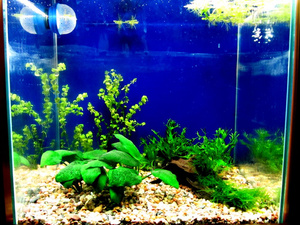Адовский грунт у мя тока в одной банке, в других будет обычный, но с грунтовыми удобрениями (2 вида тертровские). Поэтому воду начну подменивать тоже чуть позже. Растения в этой банке засажены практически по плану. На другие банки растений может не хватить. Ищу валлиснерию спиральную недорого, а так... переднего и среднего плана трава есть. СО2 пока в стадии изготовления колокола... тож наверное через неделю-две будет запущен брагогенератор.