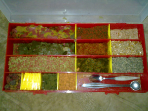 Это я по комнатам шарахаюсь с этой коробочкой, в разные аквариумы разный корм сыплю по графику. Чтобы диета правильная была...