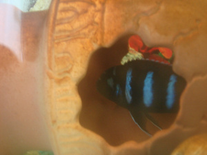 Отдам самца цернополосой цихлозомы. 7 см, красивый, все плавнички целы, нерестился, мальков раздавала.