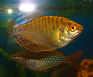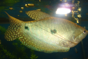 Продам парочку пятнистых гурами (золотой - 7 см. и серебристый - 9 см) 120 рублей за хвост.