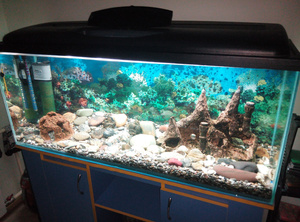 решил возобновить аквариум, пока живет вольготно сомик на 240 литров.