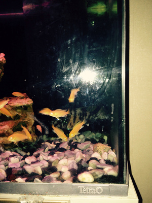 * купил многовато цихлид "Попугай карликовый", размеры 4-5см. 3 штуки, продам или поменяю на золотистых Анцитрусов, рыбку Нож, Лабео, Угорь макрогнатус
