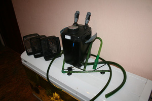 Есть внешник jebo 835 на 300 л, б/у, без фильтрующих элементов. Немного подтекает соединение входного шланга (если руки откуда надо, а не как у меня, то неледить не проблема).