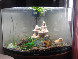 Угловой аквариум 190 литров. JEBO R470. Био-фильтр, свет от эпра.