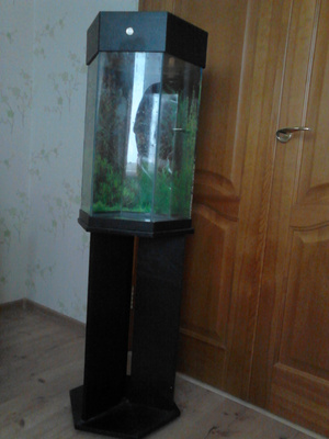 Продам шестигранный аквариум высотой 50 см. Ширина грани 19 см. С крышкой, светом, со встроенным кулером на случай жары, с водонагревателем АКВАЭЛЬ (на гарантии), на подставке, с задним фоном. Цена 1000 рублей. Тел 8-913-925-7709.