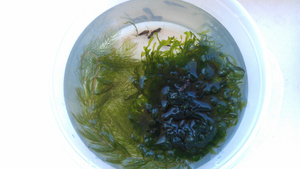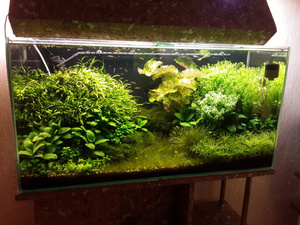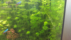 пистия (много), роголистник, элодея, мхи, ричия ,ряска, валиснерия и еще какая-то мелочь. Всего понемногу. Литров на 70 заселить.