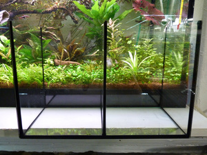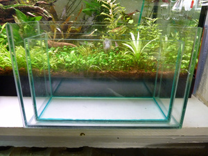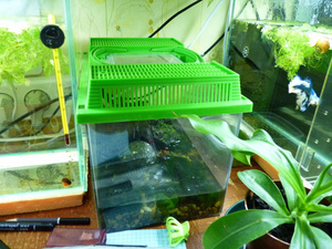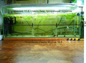 Так же есть аквариум с перегородкой, два квадратных отсека, объем каждого примерно 4л.