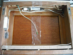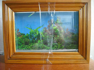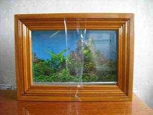 Продам настенный аквариум. Размер 45д*30в*10г. В деревянной раме шпонированной красным деревом и покрытой лаком. В раме есть проводка под свети компрессор.