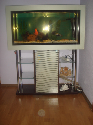 Грунт, задний фон, декорации. Аквариум и тумба в отличном состоянии. Цена 17000 р.