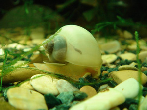 Хищная улитка хелена - незаменимый помощник в борьбе с бесчисленным поголовьем улиток.