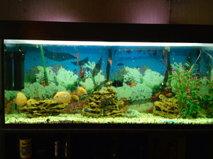 если кого-то на перспективу заинтересовало-пишите в личку,обсудим-сюда захожу крайне редко. Кроме аквариума буду избавляться от большей части рыб-так как банка на новом месте запланирована максимум литров на 200.Рыбы -взрослые цихлиды,парами. На фото-северумы,их оставляю себе)))