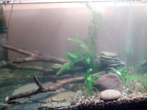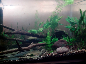 Собираюсь завести аквариум. Аквариум самоклей, примерно 80 литров В40, Д60-70, Г35-40 см. Грунт камушки, крупный песок, место под кормешкой выложу плоскими камнями, грот из плоской гальки на силиконе, коряга или две (натуральные), растения скорее всего в горшочках с землей обсыпанные камушками. Крышку / свет тоже самоклей + пленка под дерево. В наличии все кроме компрессора, фильтра и терморегулятора (но это решаемо), так что скоро как разгребусь с завалом, то начну собирать.