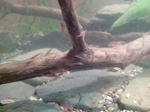 ). А креветки плавают как рыбки на всю высоту аквариума. Теперь захотел стайку Галактик, но удовольствие не дешевое.
