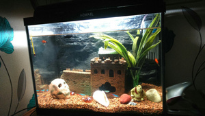 в нем все необходимое для заселения жильцов: фильтр, лампа, корабль,2 искусственных растения,раковина,грунт.