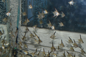 Продаю молодняк скалярий Дантум моего разведения. Родители из Израиля (первое и второе фото). Первое разведение в Новосибирске! Размер малышей одно-двухрублевая монета (тело без хвоста и плавников), возраст два месяца, едят рачка артемии, коретру, мелкого мотыля, фарш, сухой форелевый корм. Цена 180рублей за штуку, от 10 штук сделаю скидку. В наличии мало!