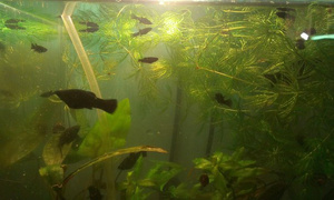 К сожалению вынужден продать банку 60Х35Х26 50 литров Внутри растения: Роголистник, Криптокорина Вендта коричневая, анубиас нана, людвигия, элодея, валиснерия спиральная, кабомба каролинская, лимонник. Из животных: гуппи краcные (самки подростки), креветки вишня. Грунт. Из оборудование фильтр. Света нет. Крышки нет, накрываю стеклом. Гупех сфотать не удалось они блин зараза размазанными получаются. Скалярки вот они. Ценник 1500 умеренный торг. Смотреть после 18.00. Экскурсии платные 150р билет взрослого, 50р школьники и дети, до 5 ти лет бесплатно. ; ) (Шутка конечно)