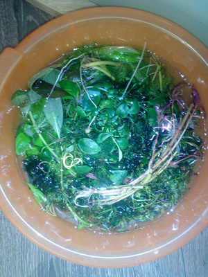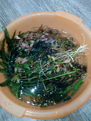 Прополкой: индийский папоротник, бликса японская, лимонник широколистный, амбулия, мох 3 вида, анубиас (большой куст), марсилия, альтернатеры немножко, эхинодорус назгул. Нахожусь в районе ауры. 350р