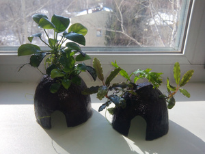 растения: мох кладофа 2 шара + два кокосовых домика + анубис + криптокрина + эхинодорус + папоротник - 500р