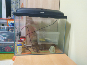 Аквариум с крышкой с подсветкой + фильтр +обогреватель + грунт (около 5 кг) 1000р