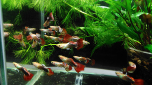 Кормление: живые (трубочник, циклоп, коретра, дождевые черви, летающие насекомые и их личинки, артемия и пр. ракообразные и жесткокрылые) и сухие корма. Корм берут как с поверхности, так и со дна.
