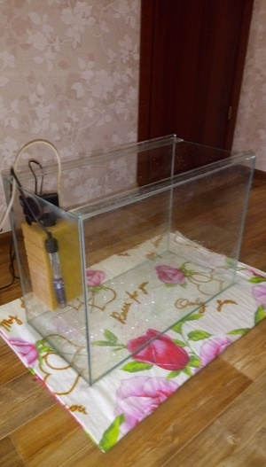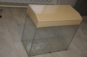 Продам аквариум б/у 60х45х30. Без сколов и трещин. Есть самодельная крышка с лампами. 1000р. Забирать в районе Учительской.