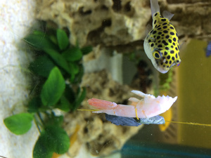 Завел еще одну рыбешку. Я прозвал его Шмель - Тетраодон Зеленый. Любит хрустеть креветкой.