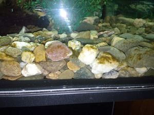 3 - про грунт. необходимо заменить грунт на более мелкой фракции - до 5-7 мм. слоем не более 2 -3.5 см , с заселением в него донных улиток -меланий . (ампулярии с цихлидами-не айс -у меня жили -мелких(потомство) пожрали, взрослые ползали не высовывая усов).